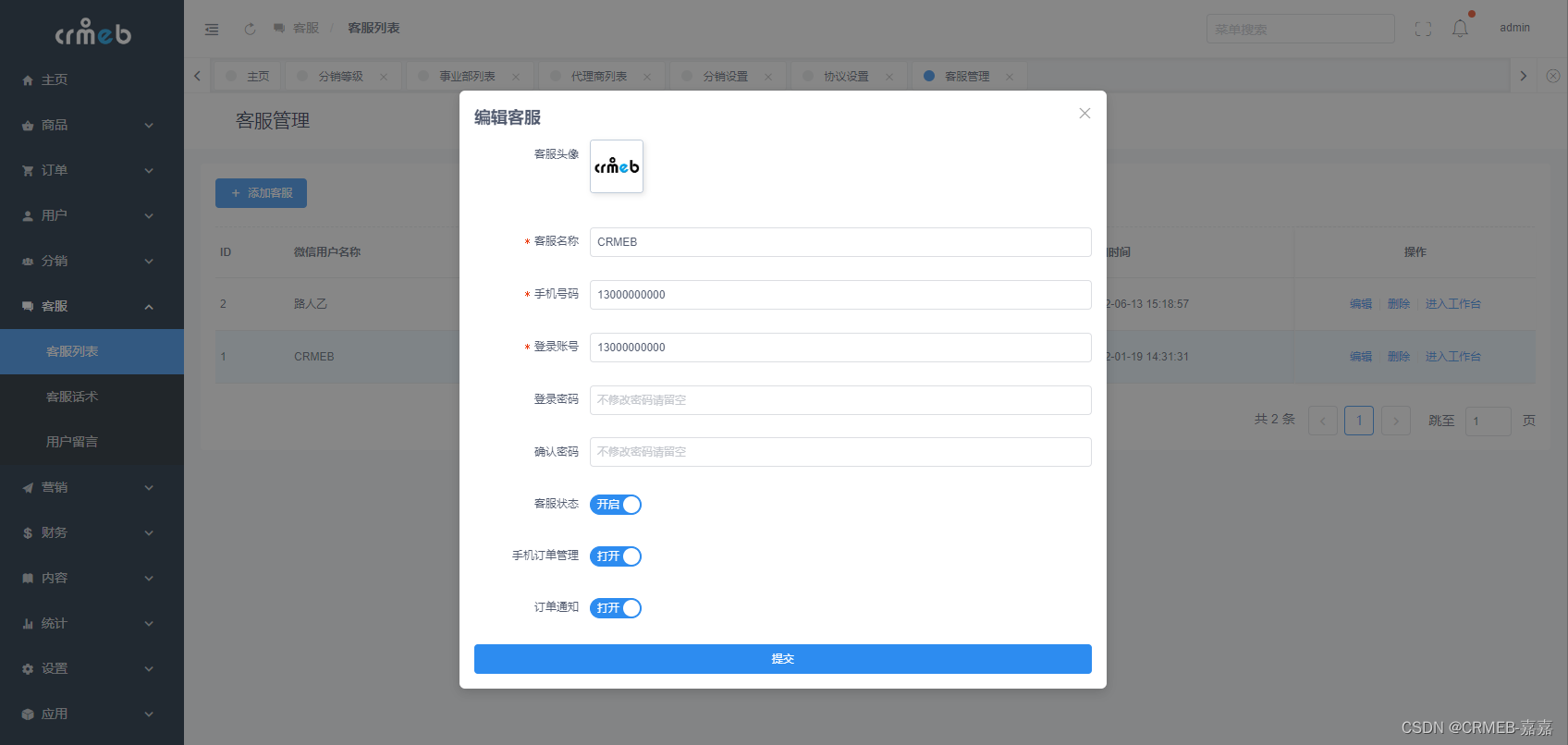 CRMEB 开源/标准版商城系统客服配置教程