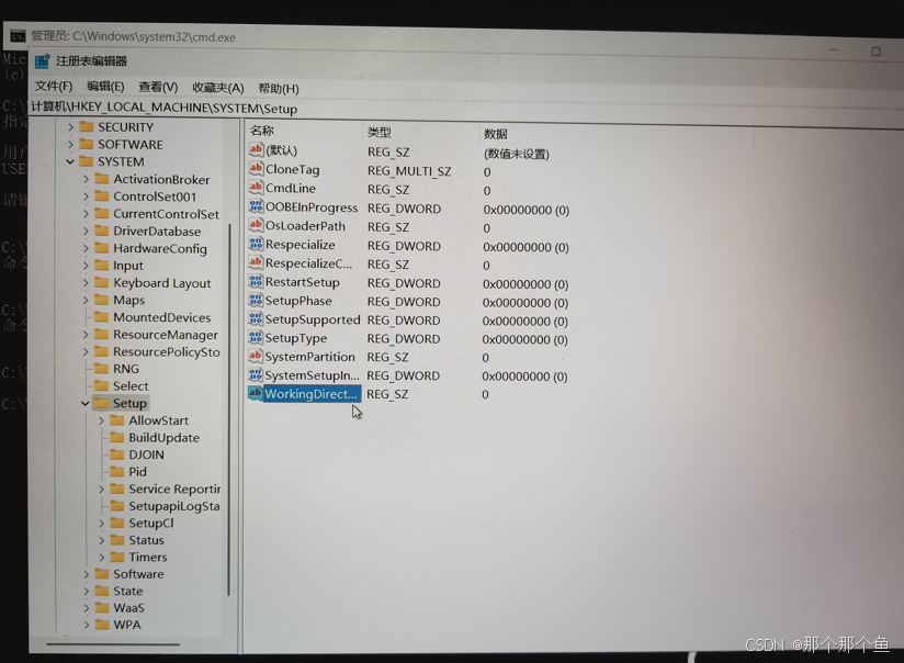 - 找到 HKEY_LOCAL_MACHINE/SYSTEM/Setup