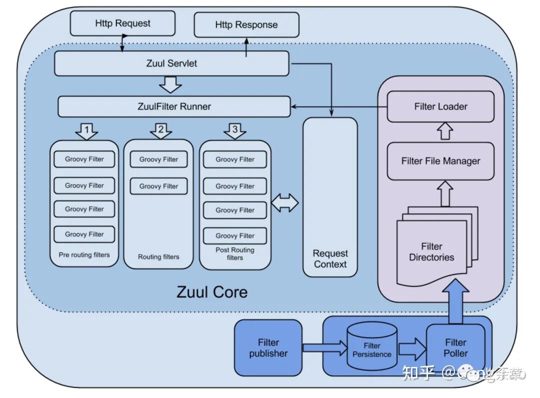 另外需要提及的是,我们使用的是 Zuul1,Netflix 已经推出了 Zuul2。Zuul2 对架构做出了较大的改进。Zuul1 本质上就是一个同步 Servlet,采用多线程阻塞模型。Zuul2 的基于 Netty 实现了异步非阻塞编程模型。同步的方式,比较容易调试,但是多线程本身需要消耗 CPU 和内存资源,所以它的性能要差一些。而采用非阻塞模式的 Zuul,因为线程开销小,所支持的链接数量要更多,也更节省资源。