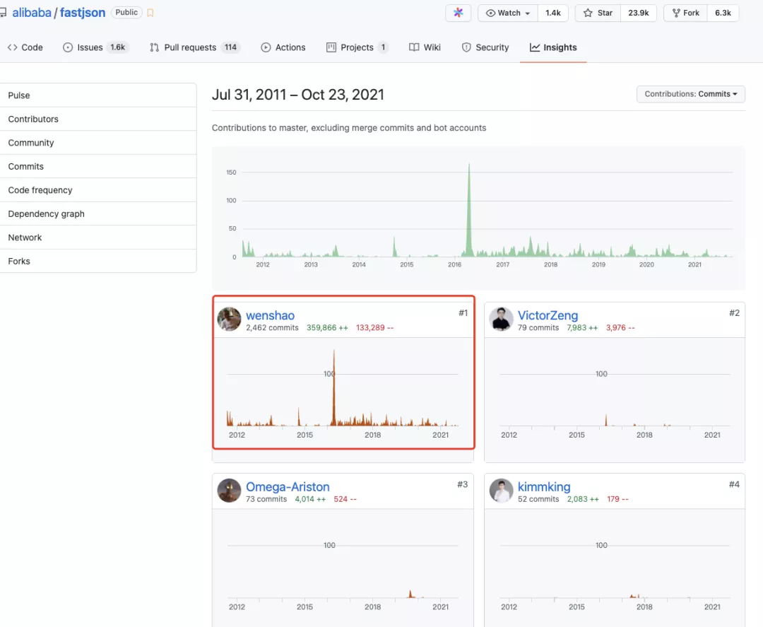 FastJson 几乎是作者温少大佬一个人开发和维护的,真心厉害!佩服!