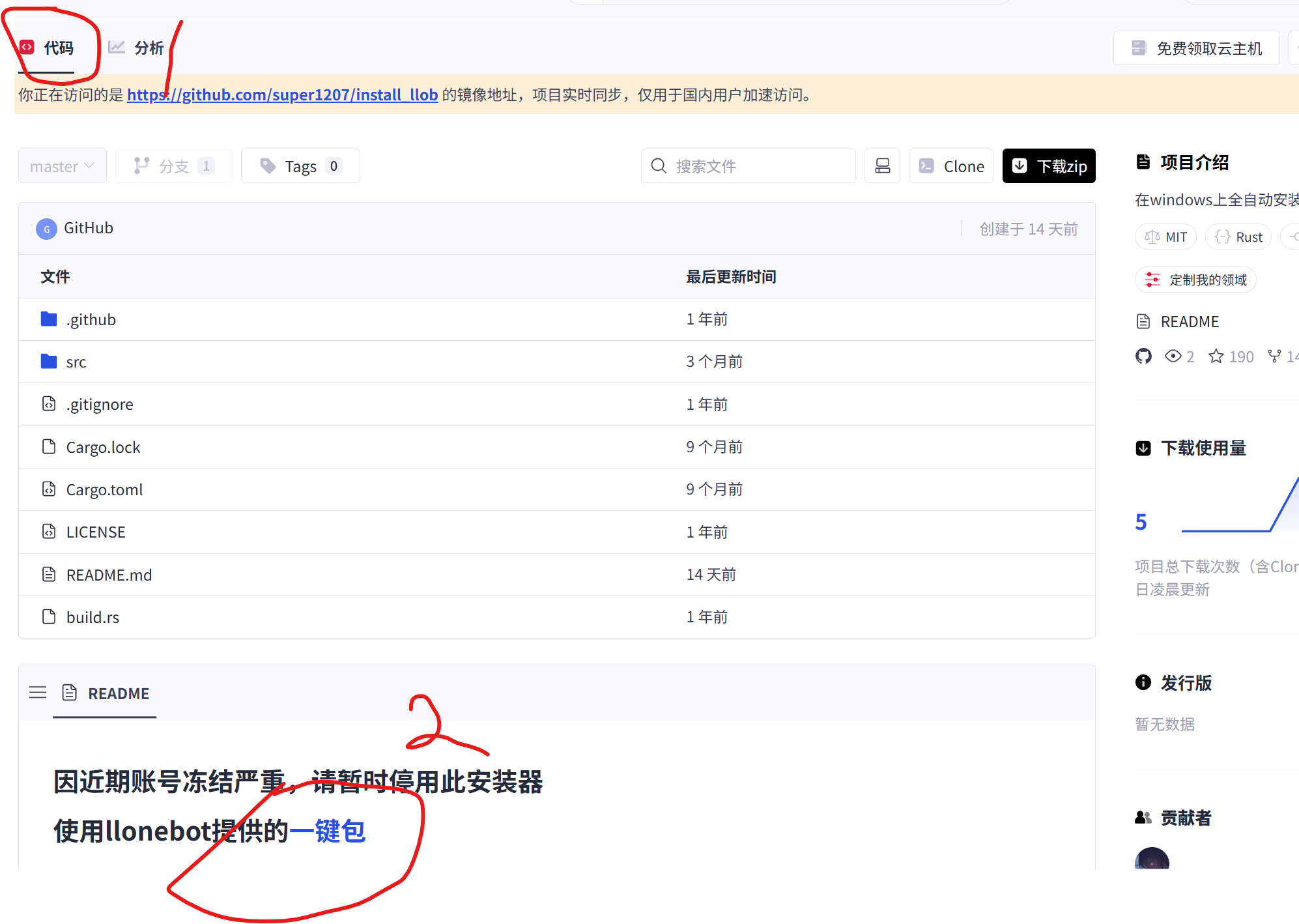 点击链接项目首页 - install_llob:在windows上全自动安装llonebot - GitCode,下载LLOneBot-win-x64.zip文件,如下图: