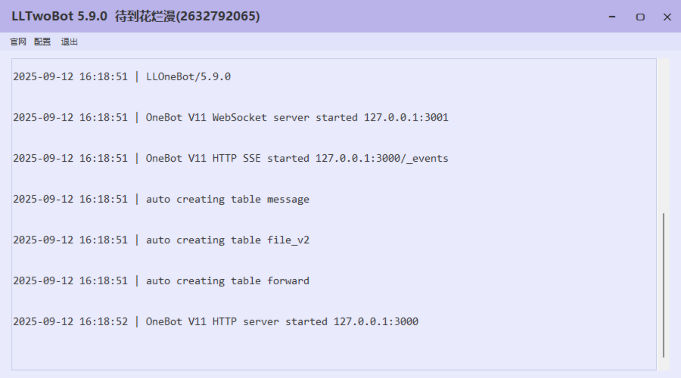 解压zip文件后,右键单击LLOneBot,以管理员身份运行,警告都允许。然后在跳出的QQ登录窗口中直接登录。LLOneBot登录成功后,跳出窗口如下图,不要叉掉这个窗口。