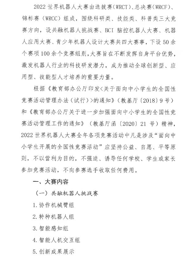 《关于举办2022世界机器人大赛的通知》