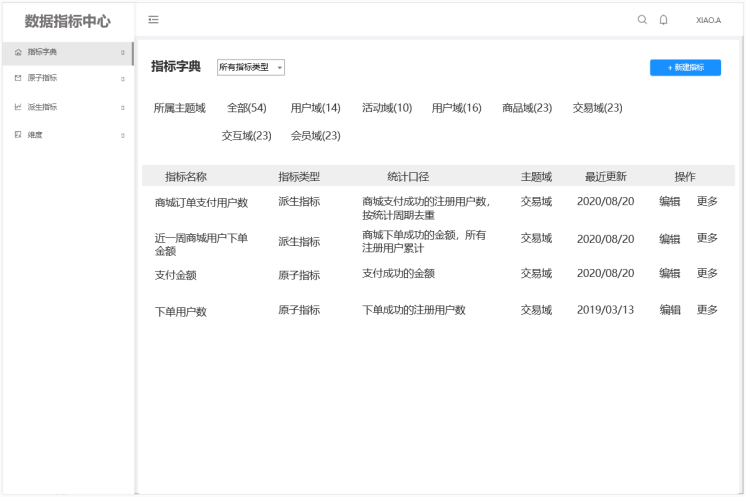 数据指标中心是规范化开发指标并对其进行管理维护的系统,将指标的组成部分解耦拆分开来,并在逻辑表中进行规范性的定义,在此基础上,后续可以按照一定规则进行自由拼装,实现自定义指标的功能。