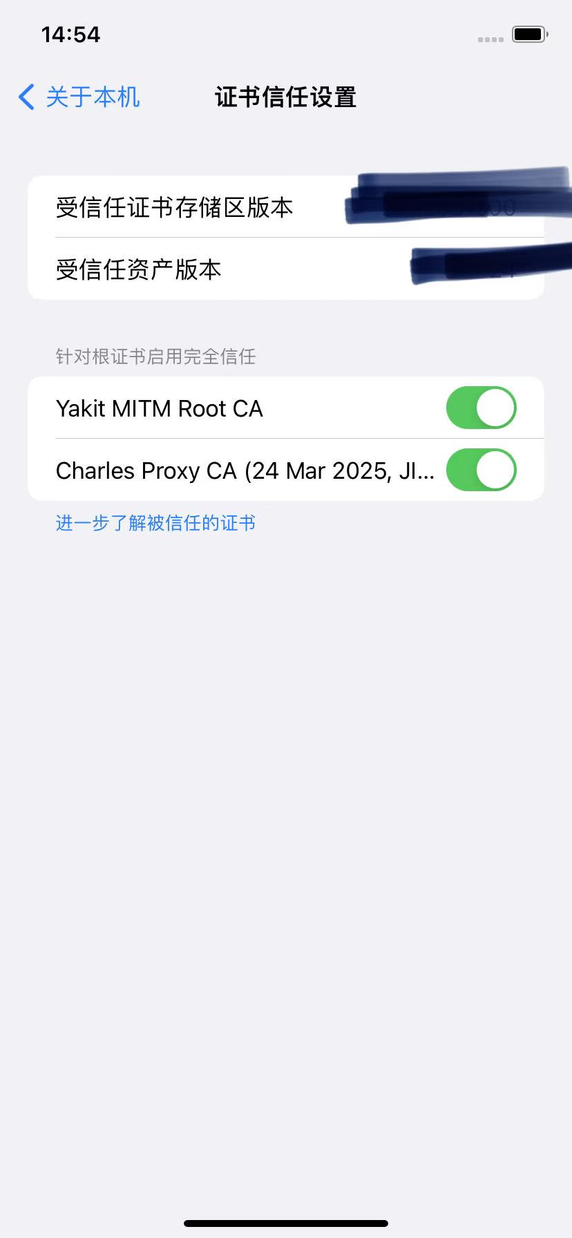 设置——>关于本机——>证书信任设置——>启用完全信任