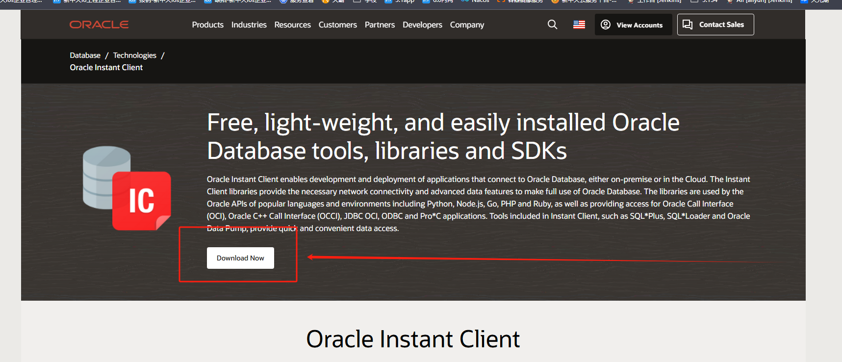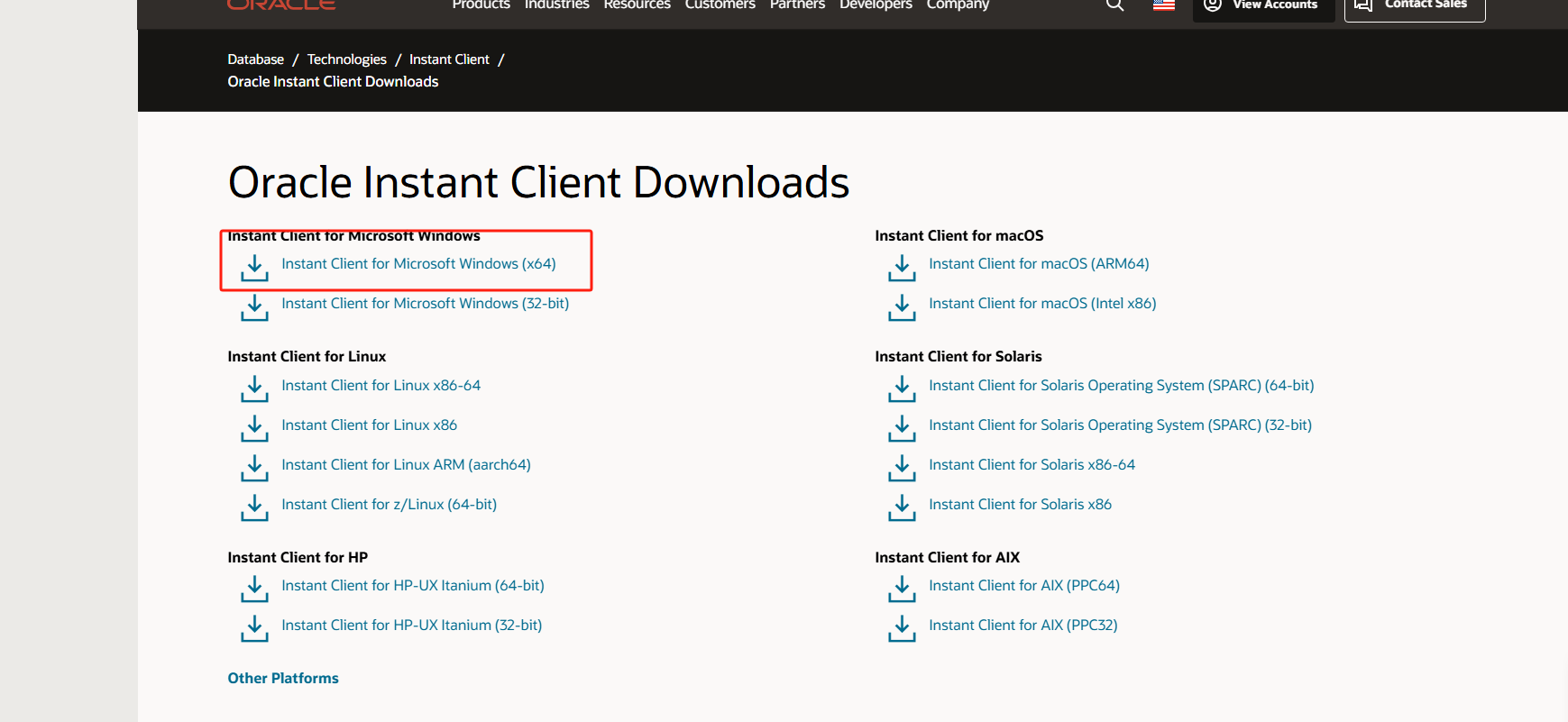 oracle官网https://www.oracle.com/database/technologies/instant-client.html
