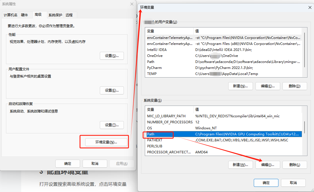 打开设置搜索高级系统设置,点击环境变量,在环境变量弹窗的下半部分的系统变量找到path如图