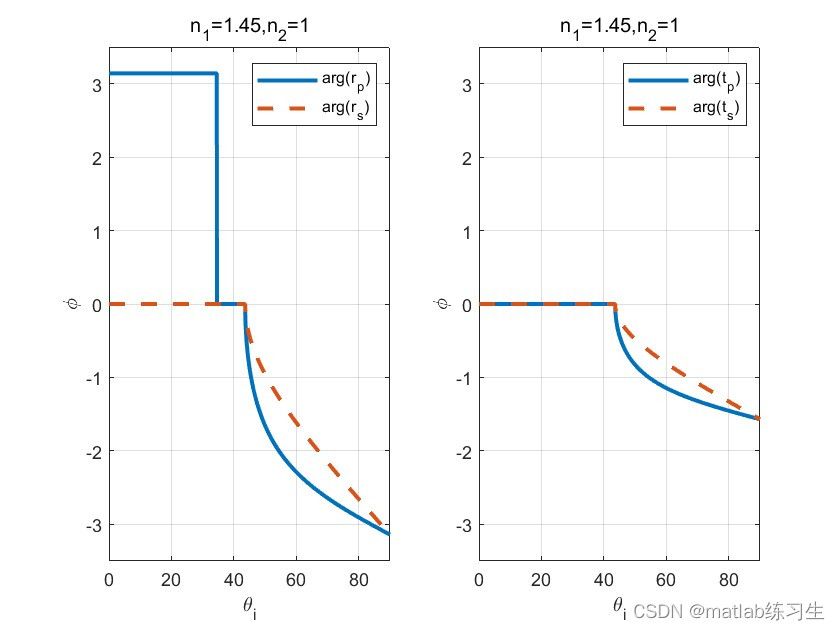 其实从之前振幅透射率的变化图可以看出(大于0时相位相同,小于0时相差π相位)