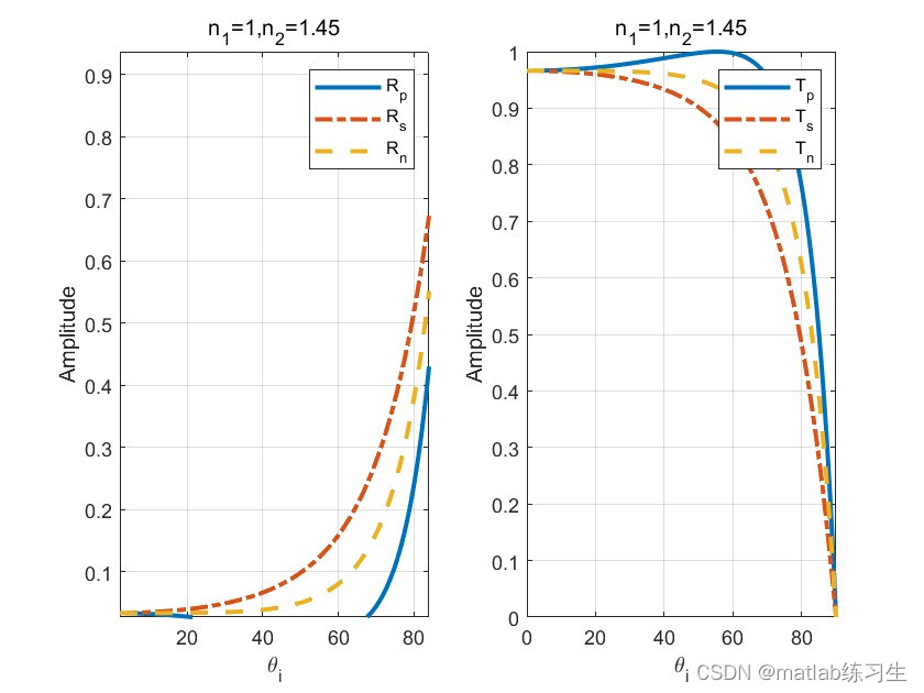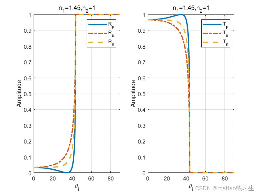 4、随着角度不断增大,Rn不断增大,Tn不断减少,但两者的和始终为1;