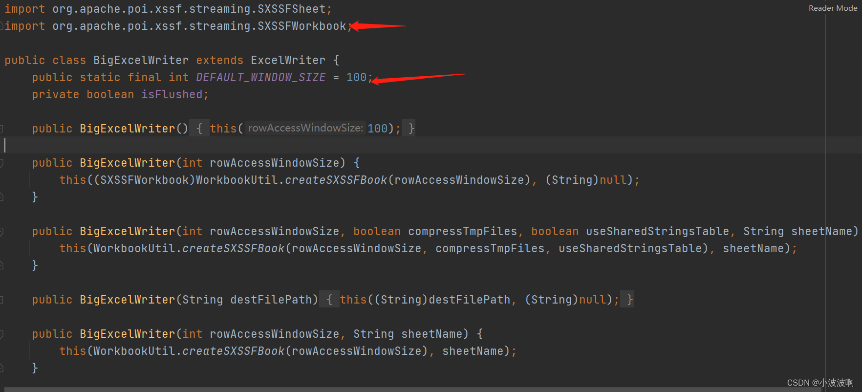 原来,SXSSF实现了一套自动刷入数据的机制。当数据数量达到一定程度时(用户可以自己设置这个限制)。像文本中刷入部分数据输出到硬盘中。这样就缓解了程序运行时候内存的压力。达到高效的目的。