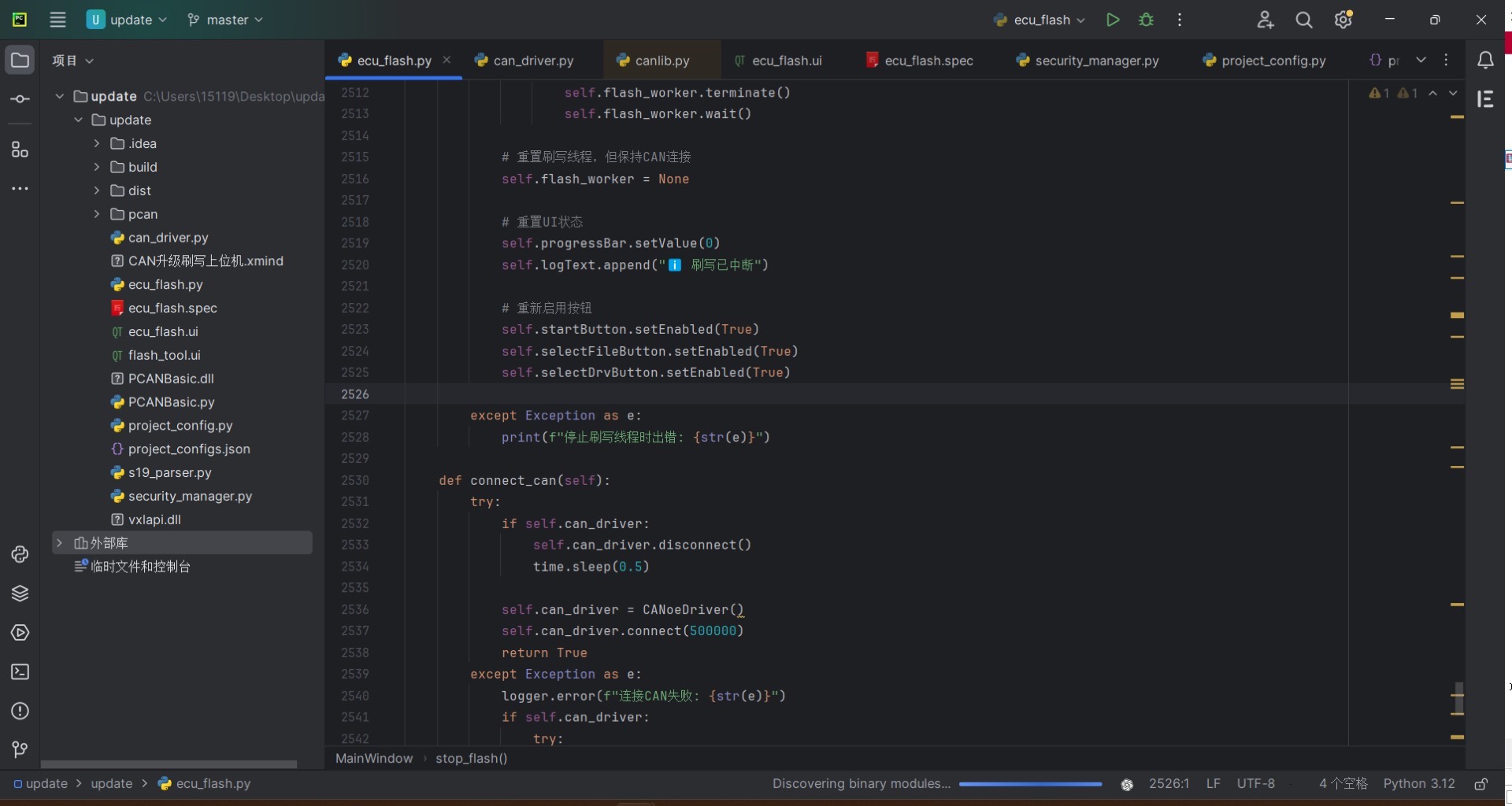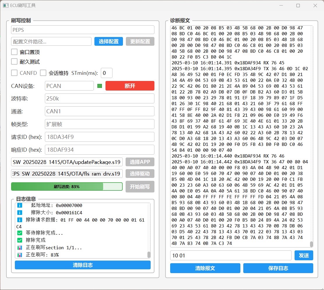 多项目管理:可视化不同车型/ECU参数的配置,一键切换项目配置,打开项目配置界面,支持S19格式的自动解析。独家发布:CANoe/PCAN设备ECU软件闪烁工具完全开源CAN/CANFD主机解决方案。为汽车电子工程师/开发人员提供多个项目、算法、密钥和其他配置的基本支持。双硬件兼容性:支持**CANoe设备**和**PCAN设备**同时通信。工业级架构:PyQt5开发,跨平台操作,代码结构清晰,易
