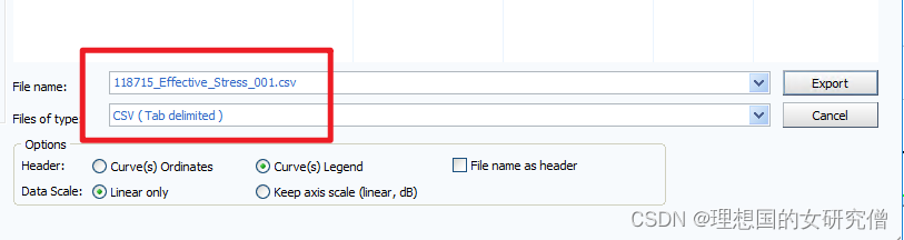 5. 点击 plot 绘制曲线图,鼠标右击-tool-export curves,保存为.csv格式