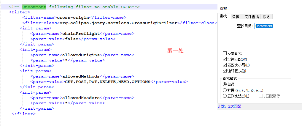需要Uncomment如下代码。可以直接在文本编辑器中搜索Uncomment。