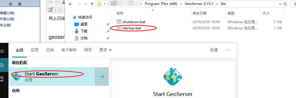 安装完之后,启动服务器。可以使用开始菜单栏的快捷方式,也可以使用文件目录下的脚本。