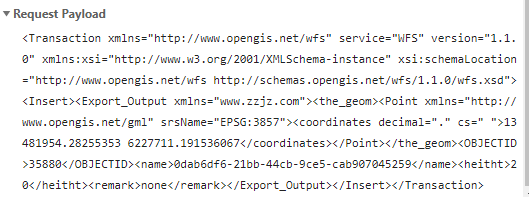 20 xhrInsert.open("POST", "http://localhost:9000/geoserver/zzjz/ows?service=WFS", true);