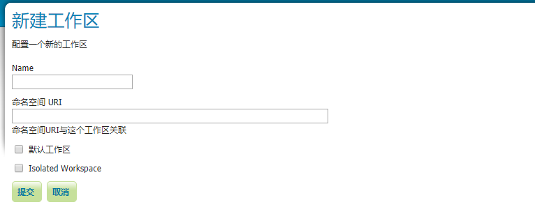 点击左侧“工作区”,添加新的工作区。name和命名空间url,都非常重要,不要随意填写。