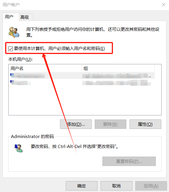 此时,取消“要使用本计算机,用户必须输入用户名和密码(E)”选项的勾。