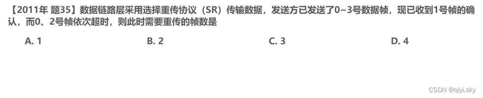 至于发送方已发送的3号数据帧,题目并未给出他的任何其他线索,因此无需考虑3号帧。