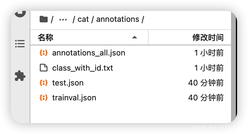 │ ├── trainval.json # 根据上面的指令只划分 trainval + test,如果您使用 3 组划分比例的话,这里是 train.json、val.json、test.json