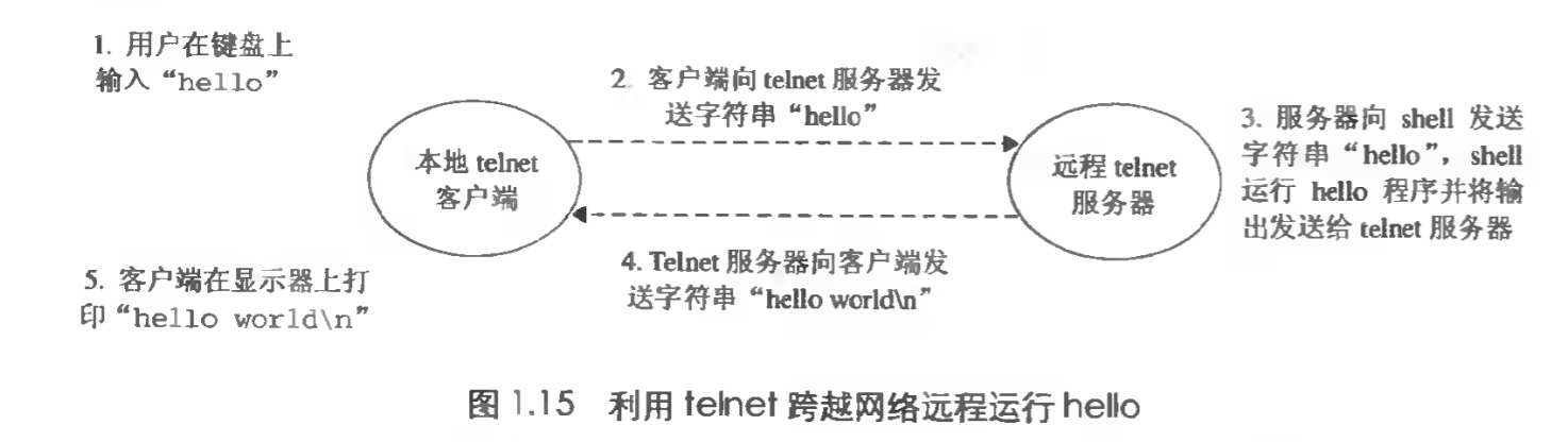 hello 目标文件中的代码和数据被加载到了处理器后,处理器就开始执行 hello 程序的主程序中的机器语言指令,这些指令将 "hello,world\n" 串中的字节从存储器中拷贝到寄存器文件,再从寄存器中 文件拷贝到 显示设备,最终显示在屏幕上。