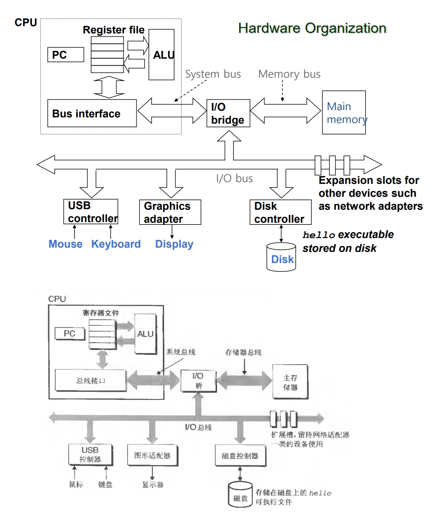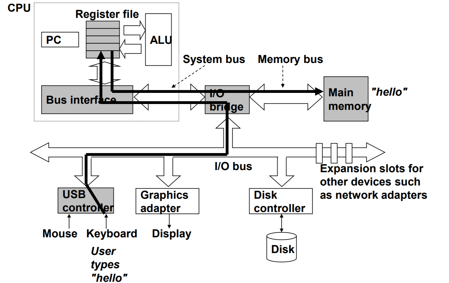 the system’s connection to the external world. ex: display, mouse, disk, and network adapter.