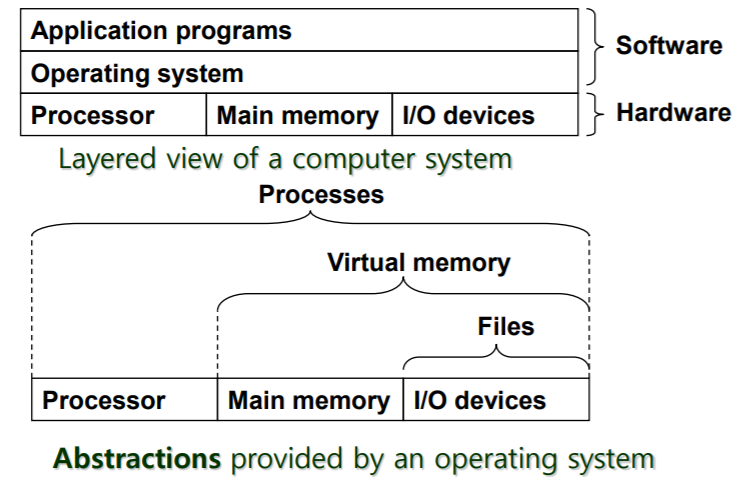 操作系统为应用软件提供抽象的/假想的硬件环境,以消除硬件细节,并将硬件依赖性与应用软件解耦。应用软件使用这些假想的系统特性(虚拟内存、I/O设备),而操作系统则将这些特性解释为真实的硬件特性。