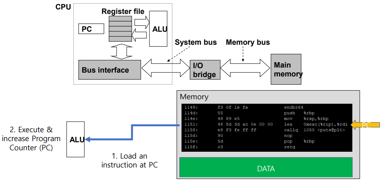 an engine that interprets or executes program instructions stored in main memory.
