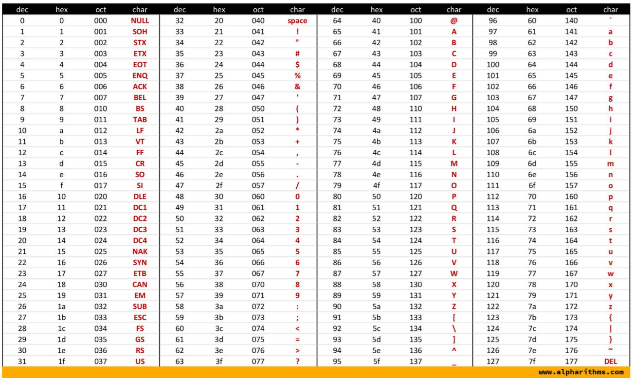 0x01 ASCII(美国信息交换标准代码)