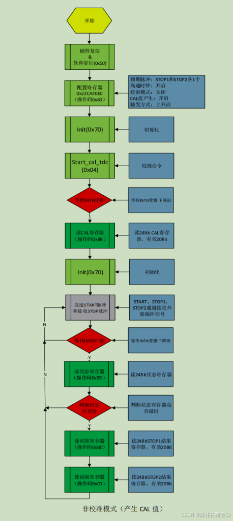 MS1003的官方文档中流程图有些问题,在发送校准指令之后不需要等待中断,可以直接读取MS1003产生的校准值,在配置的时候要注意。以下是MS1003的配置流程图: