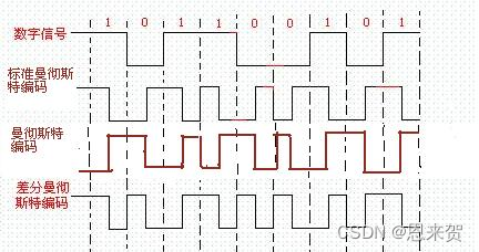 答:曼彻斯特编码又称曼彻斯特相位编码,它通过相位变化来实现每个位(图2).通常,用一个时钟周期中部的上升沿表示“1”,下降沿表示“0”.周期末端的相位变化可忽略不计,但有时又可能需要将这种相位变化计算在内,这取决于前一位的值.