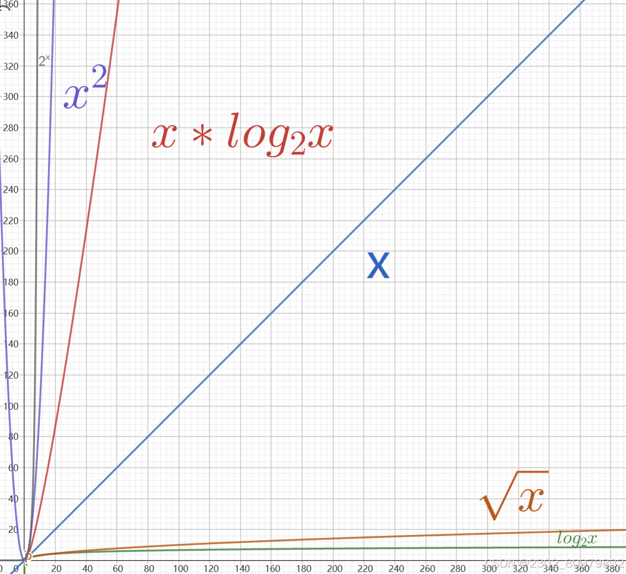 时,T(n) ≤ c⋅f(n),则称 T(n)=O(f(n)),其中 T(n) 是算法的实际执行时间,f(n) 是一个函数,代表算法时间复杂度的增长趋势,n 是输入数据的规模。