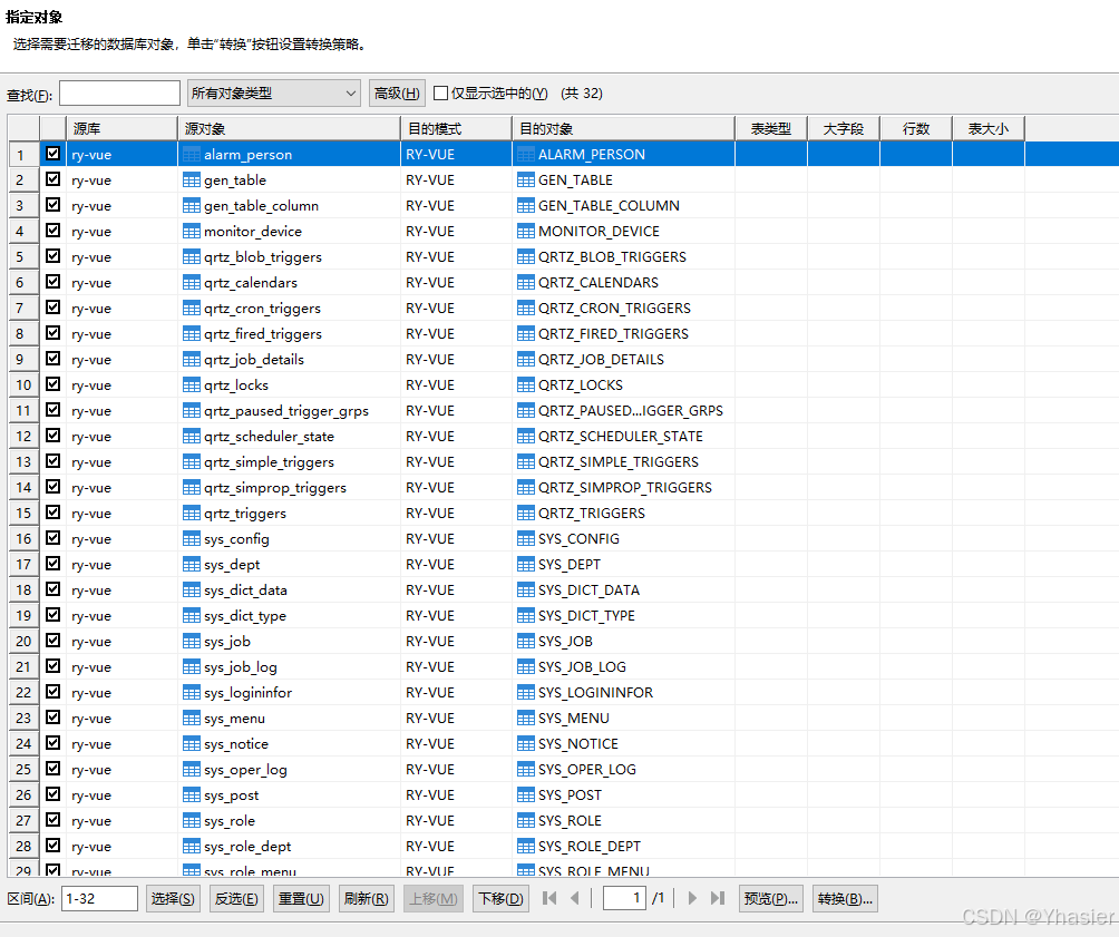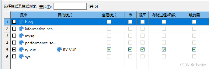 一直下一步,到这儿勾选mysql的若依数据库即可: