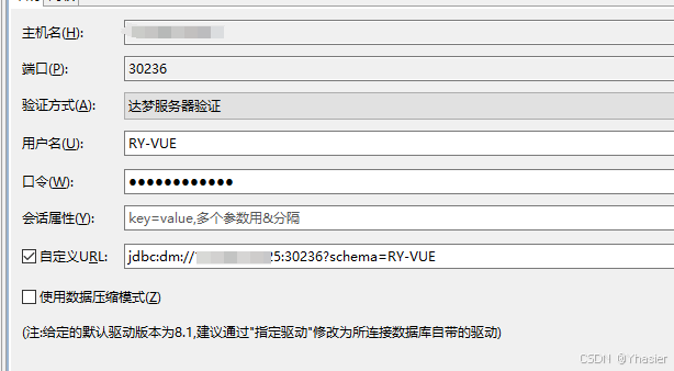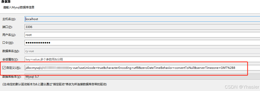 到这一步填写源数据信息可以直接用自定义url,你把若依部署后在后端配置文件直接复制过来即可,