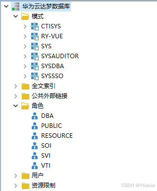 这里我已经提前创建好了RY-VUE用户,模式中也有对应的RY-VUE。