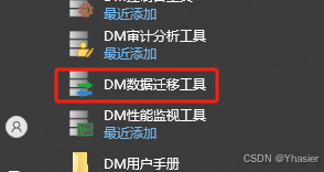 MySQL的语法达梦基本没太大差别,所以只需要将若依在mysql的数据迁移到达梦即可,打开开始菜单,找到数据迁移工具: