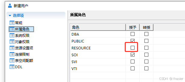 记得勾选角色里的resource,因为数据迁移需要建表,所以需要这个权限。