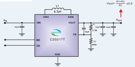 如何运用升降压芯片CS5517实现锂电池稳定输出3.3V/3.6V(1.2-5V)的电压