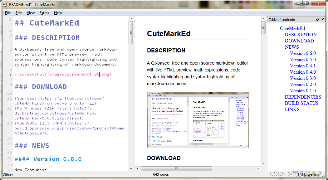 CuteMarkEd(Qt开发的Markdown编辑器)