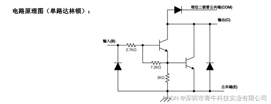 是单片集成高耐压、大电流达林顿管阵列,电路内部包含八 个独立的达林顿管驱动单路。电路内部设计有续流二极管,可用于驱动继电 器、步进电机等电感性负载。单个达林顿管集电极可输出500mA。将达 林顿管并联可实现更高的输出电流能力。该电路可广泛应用于继电器驱动、 照明驱动、显示屏驱动(LED)电路连接,可直接处理原先需要标准逻辑缓冲器来处理的数据。、步进电机驱动和逻辑缓冲器。的每一路达林顿管串联一个。