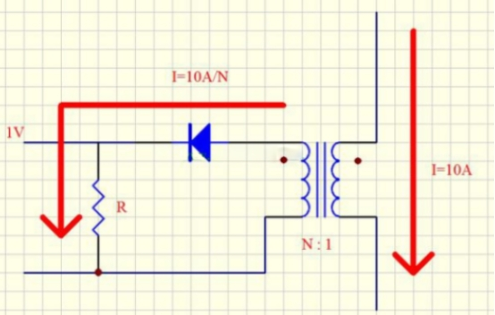假定用电流互感器检测变换器的原边电流,原边电流10A,想得到1V输出电压。