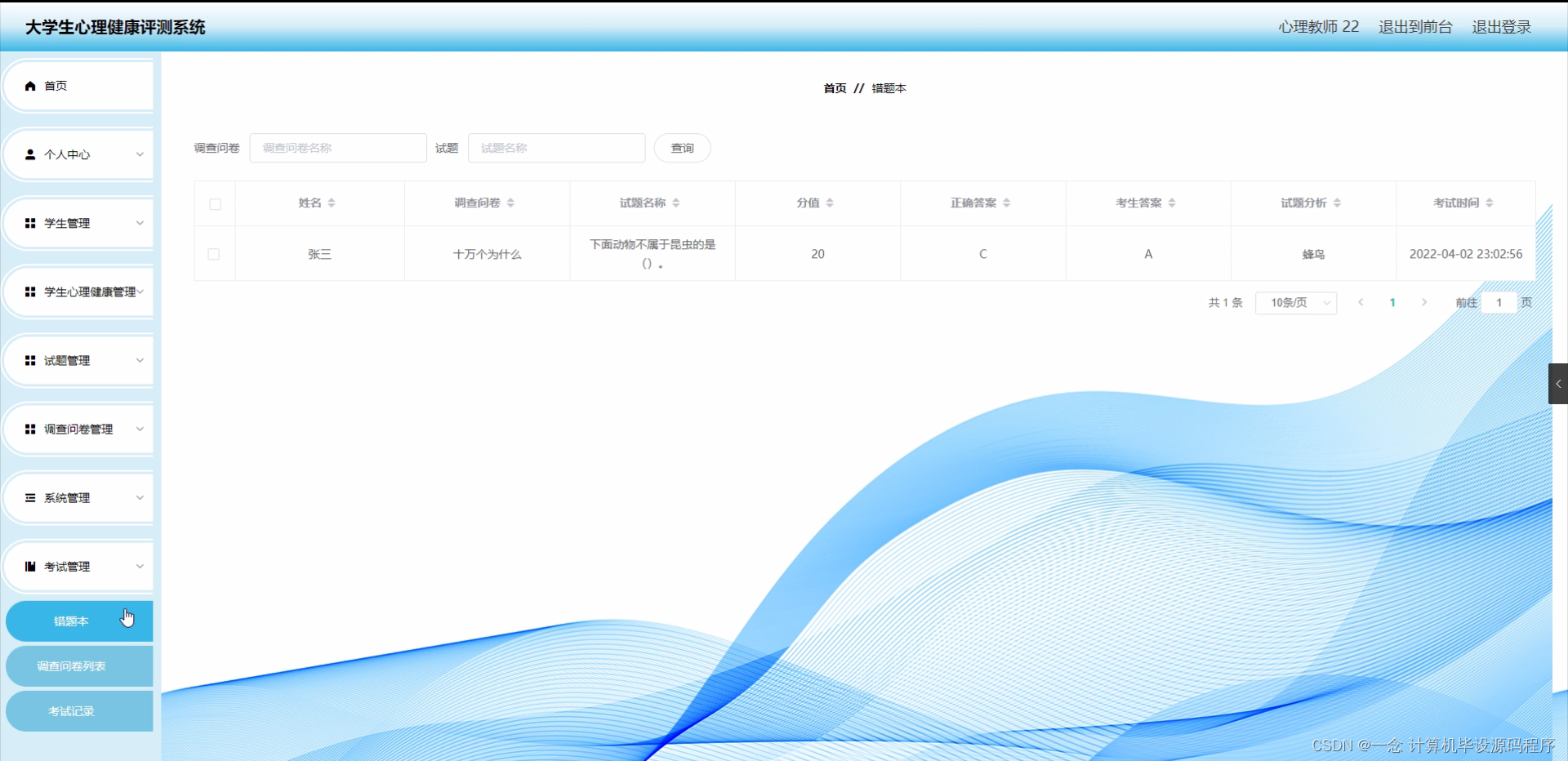 研究背景:随着社会的发展和教育水平的提高,大学生心理健康问题日益凸显。大学生面临着学业压力、人际关系困扰、职业规划等多重压力,这些压力可能对他们的心理健康产生负面影响。因此,建立一套科学有效的大学生心理健康评测系统具有重要意义。研究意义:通过大学生心理健康评测系统,可以及时了解大学生的心理健康状况,为他们提供精准的心理干预和辅导服务。同时,该系统还可以为学校和相关部门提供数据支持,帮助他们制定针对