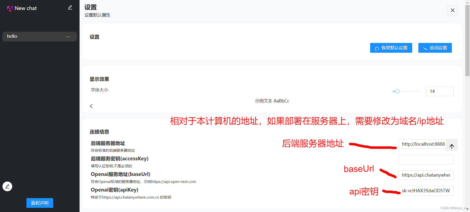 同时还可以对基本的聊天,绘图,tts,stt等进行设置。注意: 设置后应用设置。