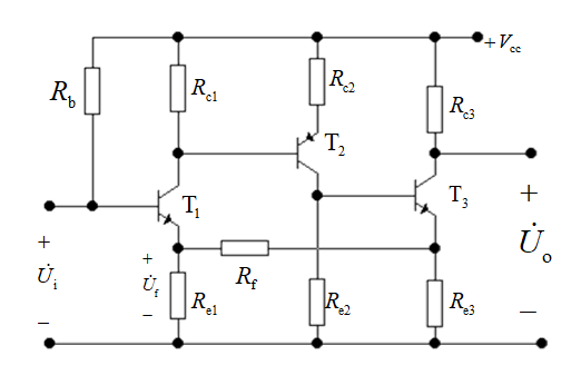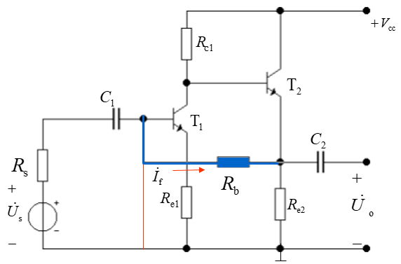 A u f = U o U i = I c 2 R c 2 I i R i f A_{uf} = \frac{U_o}{U_i} = \frac{I_{c2}R_{c2}}{I_iR_{if}} Auf=UiUo=IiRifIc2Rc2