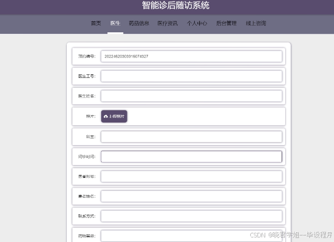 基于nodejs+vue智能诊后随访系统[开题+源码+程序+论文]计算机毕业设计