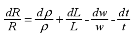 与此同时,考虑到金属丝长度方向的变形引起宽度的改变,其电阻值可表征为: