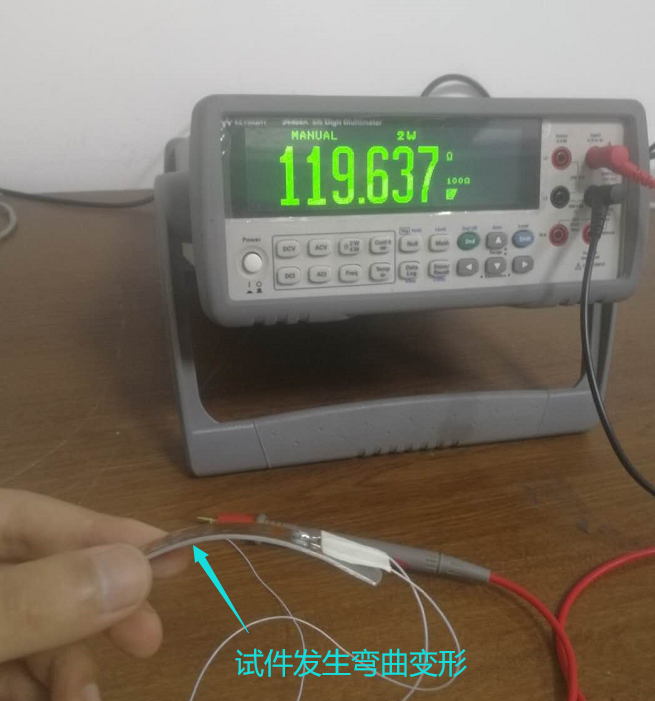 能够测量弯曲变形:1、电阻值具有明显的变化;2、多次循环加载,传感器均能回到初始状态