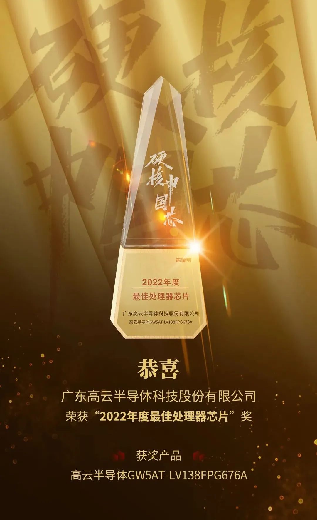 作为压轴环节,“2022年度硬核中国芯评选”获奖榜单重磅揭晓。广东高云半导体科技股份有限公司及其产品在135家企业、174款产品中脱颖而出,一举斩获“2022年度最佳处理器芯片”大奖。