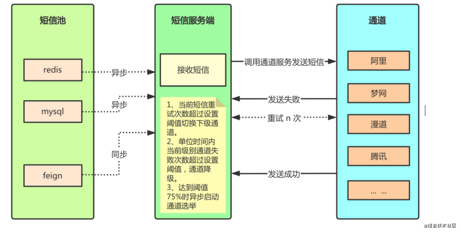 和具体的短信通道对接(例如:阿里云短信、梦网短信等),发送短信