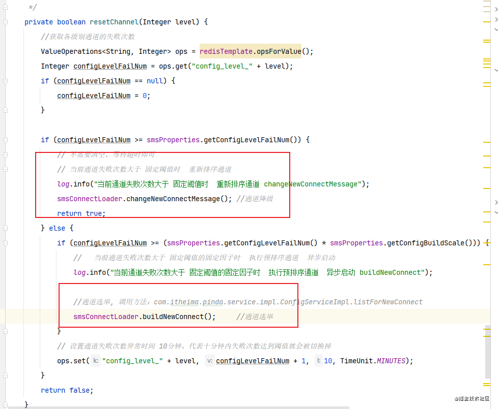 在一次真正向第三方发送短信的时候,如果发送失败,就会走进到这个重新排序通道逻辑,判断是否需要重排序