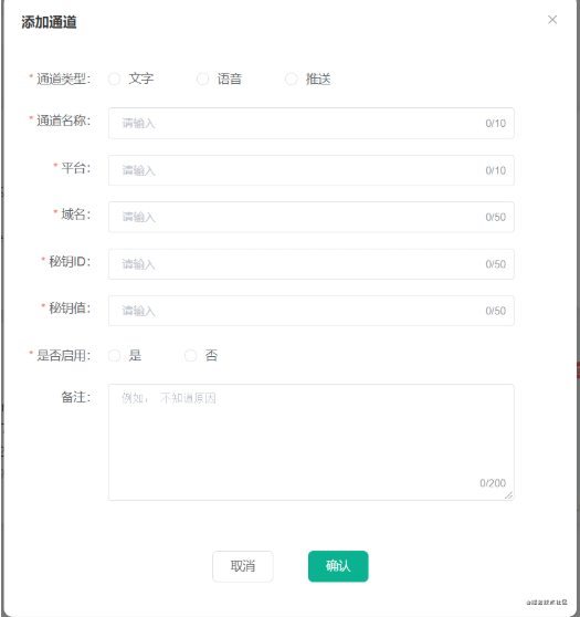 短信发送服务存在多个通道(例如阿里云短信、梦网短信等),这些通道是通过后台管理系统设置的,包括通道的名称、签名、模板、连接方式等信息。当短信发送服务启动时,或者后台管理系统设置通道时,将会初始化短信通道。
